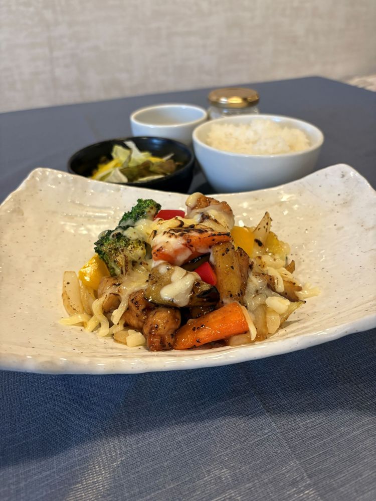 鶏肉と色々野菜の黒コショウ炒めあぶりチーズ 1080円